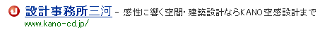 今までの「設計事務所 愛知」だけでなく、新たに、「設計事務所 三河」「設計事務所 岡崎」の2つのキーワード(各々2つの語間はスペースなしでもいい)で「KANO空感設計」が、赤いJマーク付きで検索結果1位のすぐ上に表示されます。