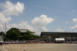 他にも会の最後に全学年男子で行う帽子取りがあるのですが、これも、大きく描いた岡崎城を中心に、煙幕ありの、戦国合戦を模して行われるのです。