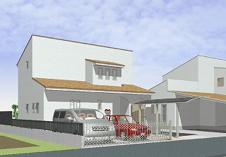 調和を考え、計画の家も白い外壁で、緩い勾配の片流れとしていたのです。