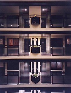 以前、マンションを設計した時に、FRPグレーチングを玄関ドア前の目隠しスクリーンとして、高級感ただよう、黒に着色して使ったことがあります。