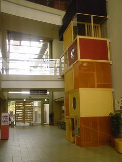 ここでも、3層吹抜のホールにおもしろい、「あそび装置」があります。