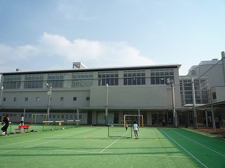 プールの後は、フットサル(ミニサッカー)コートで、持ってきたサッカーボールで遊びました。