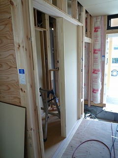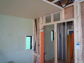 現場では、壁の石膏ボードが張られ始めました。