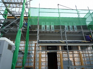 「家の顔」となる北外壁に、モルタル(簡単にいえばセメント)の下塗りを行っていました。