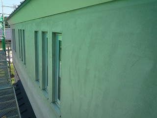 最後に、この上に白いジョリパットという吹付材を吹き付けます。