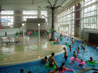 清掃工場の排熱を利用した屋内プールですが、流れるプールの一部が屋外にも行けるコースがあります。