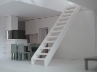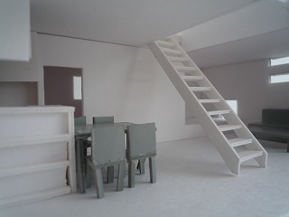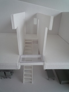 模型を作ってお見せしたという話を昨日のブログで書きましたが、内部も作っていて、この階段の違いによる案のバリエーションも差し替え可能なようにして、3案作りました。