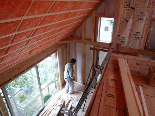 通常の透湿防水シートは室内からの湿気を通し、室外からの水は通さないというものですが、さらに、アルミ不織布により、遮熱効果もあるのです。