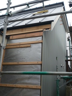 外部では外壁のガルバリウム鋼板(シルバー色)が張られ始めました。