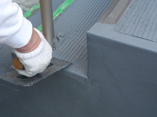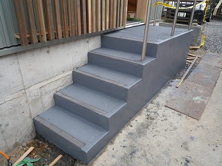 普通のセメントではなく、グレーに着色したセメントを使って、くし引き仕上げとして、すべり止めになっています。