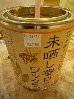 小川耕太郎∞百合子社の「未晒し蜜蝋ワックス」を、お施主様が、岡崎市戸崎元町にあるハウズというホームセンターで買ってきました。