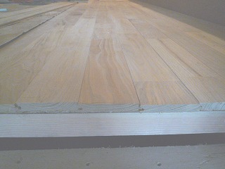 厚み15mmの本物の無垢材ですから、合板(ベニヤ)の表面に1mmに満たない程度の薄い木を張ってある合板フローリング(複合フローリングとかカラーフロアーともいう)と違って、傷ついても、紙やすりで削れば、自分で直すことができます。