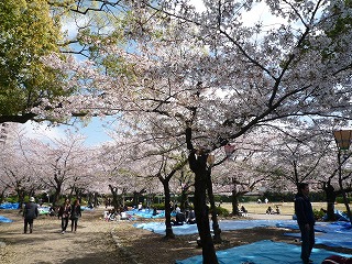 天気がよくて、大勢の花見客や屋台が出ていました。