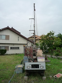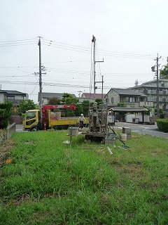 そこで、スウェーデン式より費用が高いですが、深い部分の土が採取でき、より高い精度の得られる「ボーリング調査」を行いました。