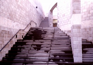 ただし普通のコンクリートブロックではなく、表面がきれいで、積み方も、半分ずつずらした、馬目地といってレンガの積み方に似ています。