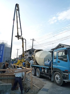 コンクリートミキサー車とポンプ車の2台が来ます。