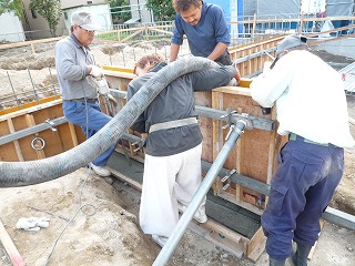 数人ががりで打設は行われます。