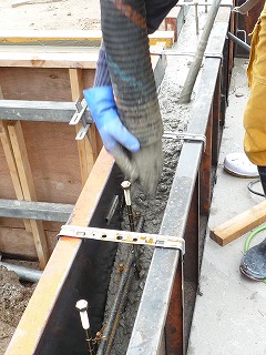 「ダブルゲートハウス」の立上りコンクリート打設立会い