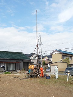 ↑建物中央にて、ボーリング調査を行っているところ。
