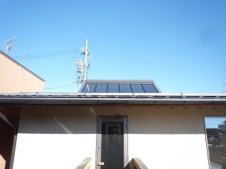 屋根面に集熱パネルをのせています。