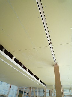 先日のブログで紹介した、「ライティングダクト」(照明器具を取り付けできるレール)を採用しますので、レールの埋め込み設置のために、天井に溝堀加工がされました。