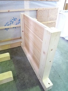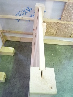 柱にあらかじめ縦に溝を掘っておき、柱と柱の間に、厚い杉板を落としこんで、外壁を構成する方法です。