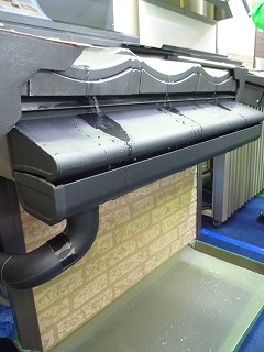 樋カバーの上を雨が伝わり、樋との水平スリット(すきま)から、雨樋に入りこむようになっています。