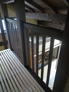 玄関吹抜に面する小屋裏収納に手摺や、すのこ床が設置されました。