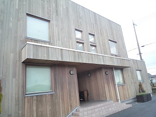 木材を扱う会社らしく、外壁には、ウェスタンレッドシダーという北米産の耐候性の高い木が張ってあります。