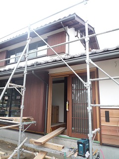 妻壁の頂部に縦格子が設置されました。