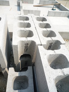 現場は基礎工事が終わり、お施主様であり大工さんの中嶋さんが、ブロック擁壁の工事をしています。