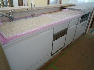キッチンは、西のダイニングを介して、光庭に面していますが、直接外部に面していないので、暗くなることが想定されました。