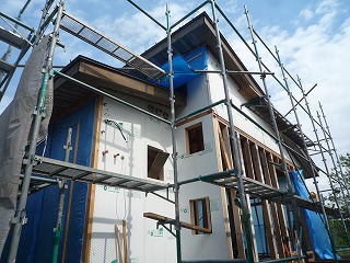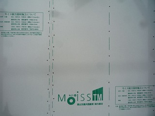 一時期は、お施主様と、違う耐力面材(ダイライト)に変えることも相談したのですが、モイスのよさにほれこんだことや、防火構造認定の関係(新聞紙を粉砕したセルロースファイバー断熱材と外壁のガルバリウム鋼板や杉板張りが可能)で、他に変えることはせず、いつ納品されるか分からないモイスを待つことを、決断したのです。