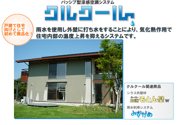 夏に「打ち水」をすると、気化熱により、周辺温度が下がることに着想を得た、外壁に自動的に打ち水をする、パッシブ型涼感空調システム「クルクール」を採用すると、なお効果が高いです。