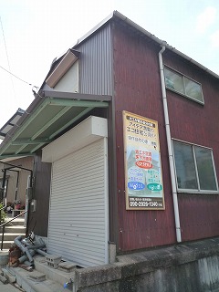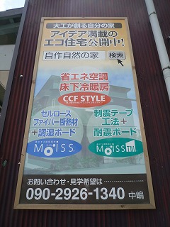 「自作自然の家/岡崎」 を紹介する看板が、既設倉庫の壁に設置されました。