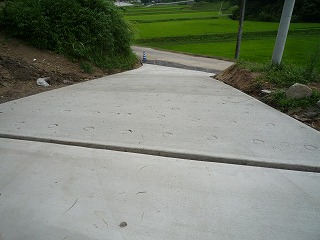 車庫前と道路から敷地に上がるスロープのコンクリート舗装が完了しました。