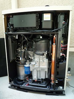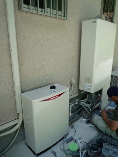 震災の影響で、エコウィルの生産に遅延が生じて、竣工時に、設置が間に合わず、当面の仮の設備として、エコジョーズ(給湯機)が設置されていました。