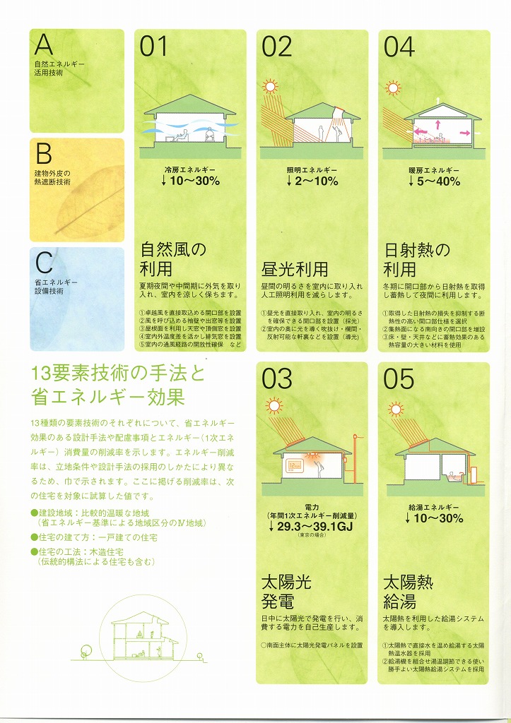 自立循環型住宅にするためには、13の要素技術があり、このテキストをもとに解説を聞きました。
