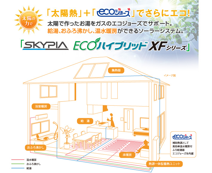 上記の図のように、床暖房や浴室暖房換気乾燥機に、温水を利用するシステムもあります。