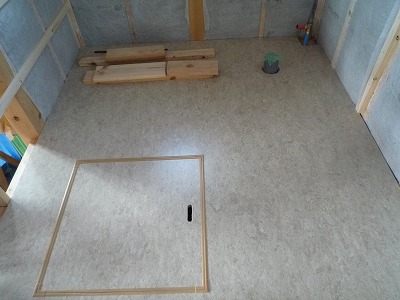 水廻りの床に、天然リノリウムが張られました。