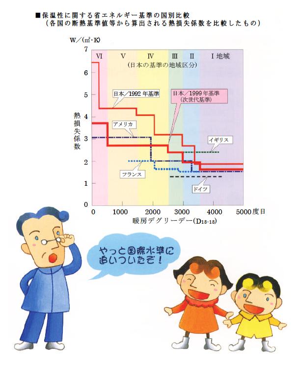 世界基準から見れば、次世代省エネ基準は、その1/3(愛知県などⅣ地域などの場合)の性能しかない、遅れた基準であるというのです。