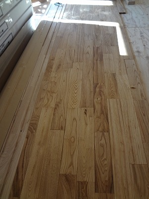 「空縁の家/豊橋」 無垢のクリのフローリング張り