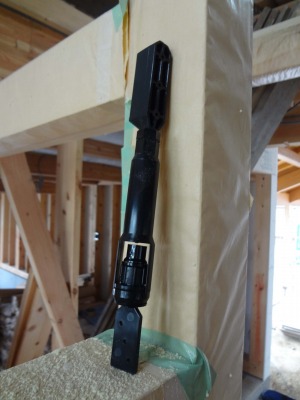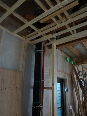 ↑2階の水廻りからの排水管は、防音材一体型にしています。