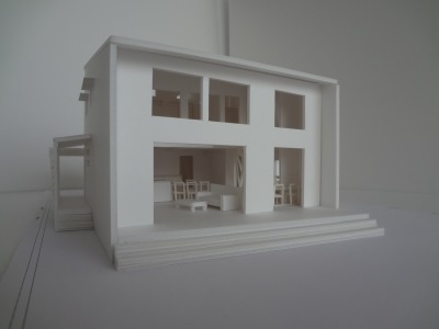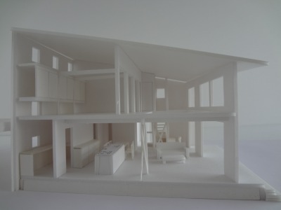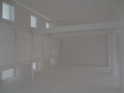 ↑各個室は、南面せず、引違戸上のランマと北側の高窓と地窓(床近くの窓)から採光通風を得ます。