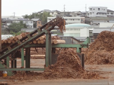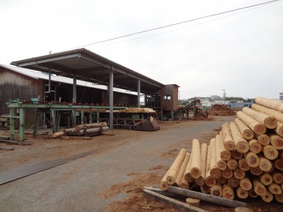 南紀建築・観光旅行 その2 山長商店製材工場 丸太皮むき