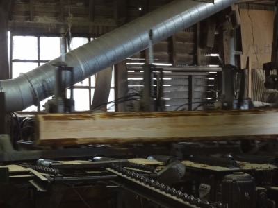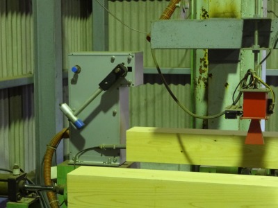 ↑切断機を通すと、丸太の1辺がきれいに、カットされます。