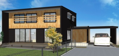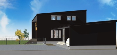 戸袋に木板を張って隠すデザインもしたことがあるのですが、この案を見ていただいたところ、南面1階が全て黒になるのもいいねということで、このまま進めることになりました。