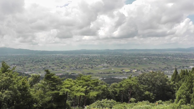 「吾妻建ち」と呼ばれる、妻面を東に大きく見せた真壁造り(柱や梁を露出)の民家が、カイニョと呼ぶ防風屋敷林とともに、田園地帯に点在する散居村の様子が、緑の海に浮かぶ小さな島々のようで、美しい風景です。
