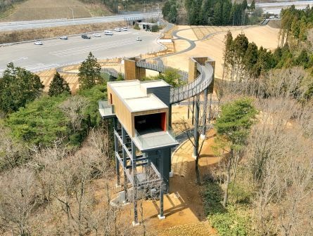 能登有料道路SA別所岳スカイデッキ「能登ゆめてらす」は、建築的におもしろい展望台です。
