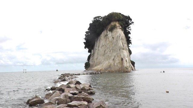 その姿から軍艦島と呼ばれる見附島は、石伝いに島に近づくことができましたが、海に携帯電話とカメラを水没させてしまうというアクシデントが発生!後日、iphoneを購入。